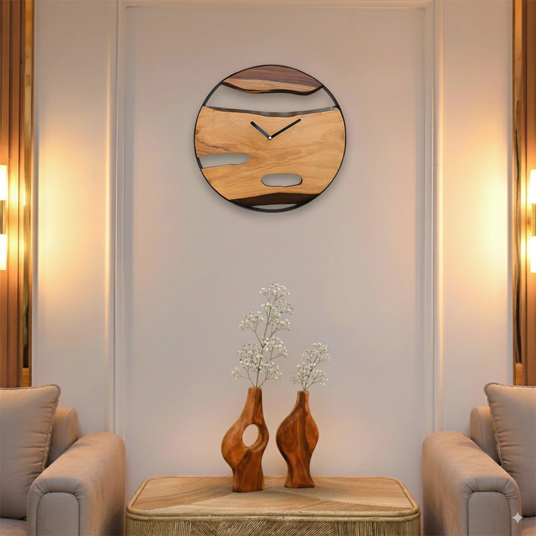 Bring home the warmth of nature and the charm of artisanal craftsmanship with this exclusive bundle featuring the Oco Live Edge Clock and the Willow Duo Live Edge Vase. Both pieces are handcrafted from solid Sheesham wood and showcase stunning live edge designs that highlight the natural grain and texture of the wood. The Oco Clock brings rustic elegance to your wall with its minimalist form and organic silhouette, while the Willow Vase adds a refined, sculptural touch to any surface with space for elegant floral arrangements. Perfect for modern, rustic, or nature-inspired interiors, this bundle is a timeless accent set that transforms your space with warmth, texture, and natural beauty. Includes: Oco Live Edge Clock Willow Duo Live Edge Vase ✨ A timeless accent set that brings warmth and nature into your space!