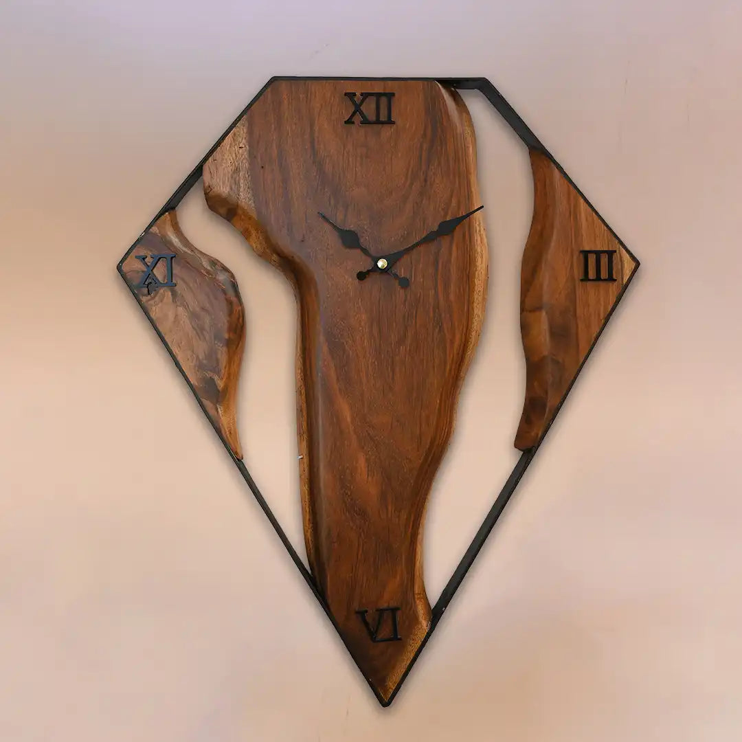 The Sylva Live Edge Clock brings a unique touch of nature to your home. Handcrafted from Sheesham wood, its diamond shape accentuates the stunning natural edges, making each clock a one-of-a-kind piece. The rich grain and smooth finish create a sophisticated yet organic vibe that complements any décor.